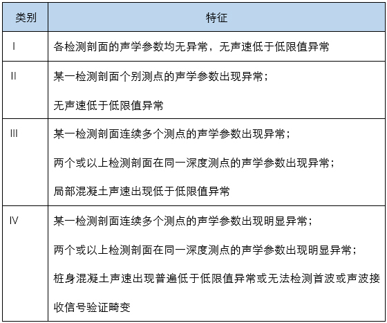 ? ? 根據檢測獲取的聲時判據、聲幅判據以及PDS判據,分析各聲學參數的臨界值,綜合各判據判斷結果以及實際的波形圖,對樁身的完整性進行評價。除上述判據外,還有主頻判據以及由聲時判據演化的聲速判據。