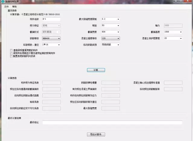 01 通過輸入如上圖所示的參數,用戶不僅可以直接指導裂縫控制驗算符不符合結果,而且可以讀取出計算過程中相應的參數。