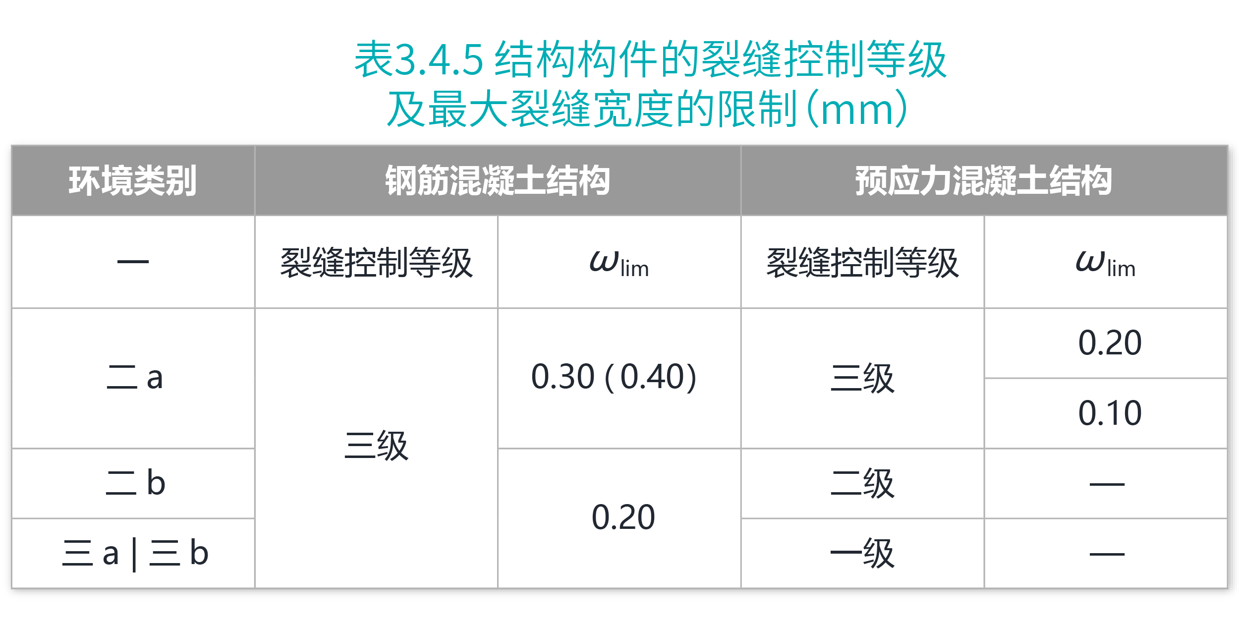 允許出現裂縫的構件:對鋼筋混凝土構件,按荷載準永久組合并考慮長期作用影響計算時,構件的最大裂縫寬度不應超過本規范表3.4.5規定的最大裂縫寬度限值。