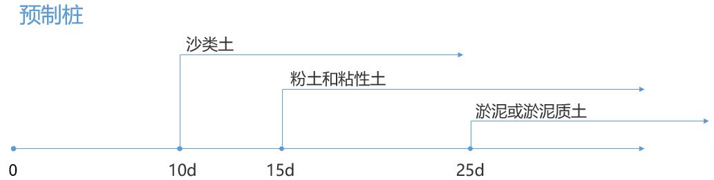 ① 預制樁在樁身強度達到設計要求的前提下,對于沙類土不應少于10d(天),對于粉土和粘性土不應少于15d,對于淤泥或淤泥質土不應少于25d ,待樁身與土體的結合基本趨于穩定,才能進行試驗。