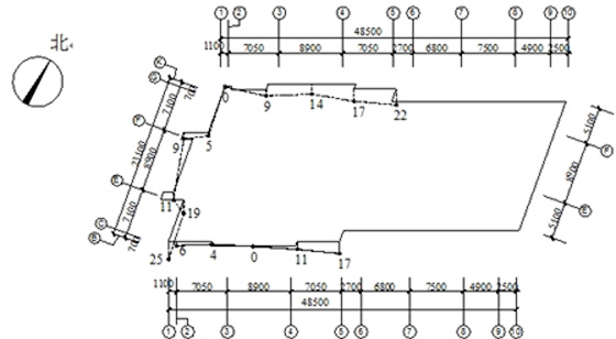 根據現場測試條件,采用日本產索佳SOKKIA CX-102型電子全站儀對房屋的整體傾斜情況進行了檢測。通過測量外墻轉角處上下兩端的相對三維坐標(含施工誤差)推算房屋整體傾斜率