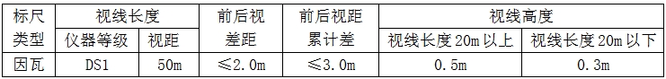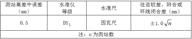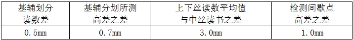 基準網觀測按照規范的Ⅱ等水準測量要求執行,精密水準測量的主要指術參照表5-1: