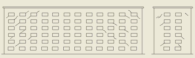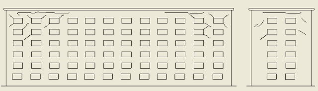 出現此種裂縫時,說明房屋地基存在不均勻沉降現象,其對房屋結構安全影響很大,應予以足夠重視。