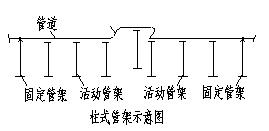管廊一般由固定管架、活動管架(一般分為剛性、柔性、半鉸接活動管架)、管道、補償器等組成,承受荷載主要有管道產生的水平縱向荷載(由管道摩擦力產生)、風荷載、垂直荷載。管架示意圖如下: